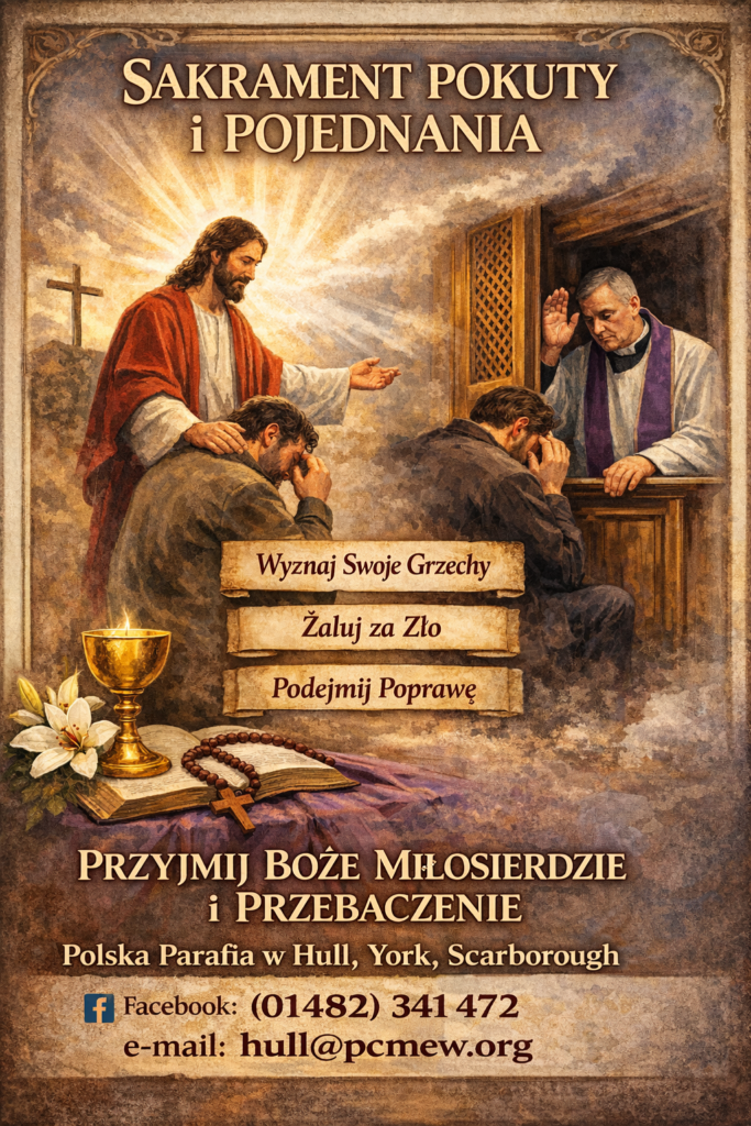 SAKRAMENT POKUTY I POJEDNANIA – zazwyczaj przed Mszą Świętą